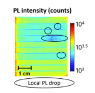 最后,采用全局成像而非共聚焦逐点或线扫描技术,可以在真实的稳态条件下探测材料的光电性能,因为它减少了电荷向较暗区域扩散的现象。在均匀照明下,光致发光实验可在0.1倍至500倍太阳光强度范围内进行,这正是光伏组件的实际工作条件。